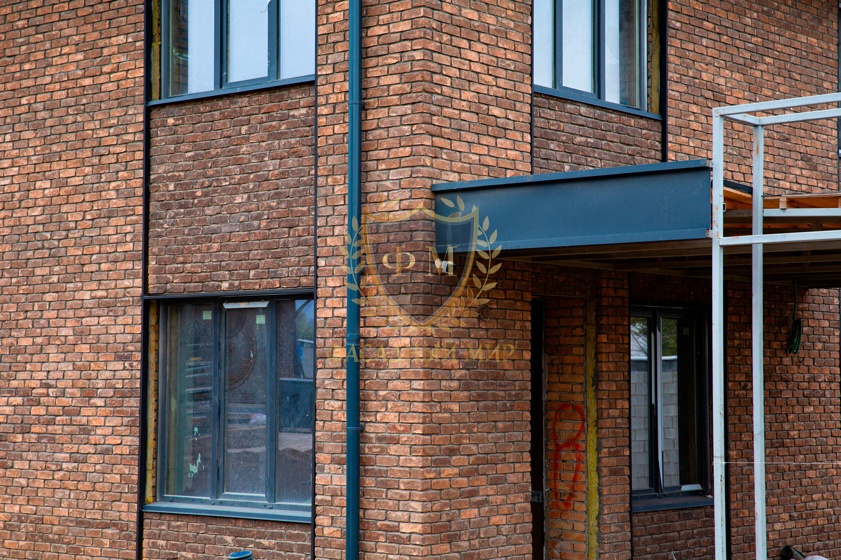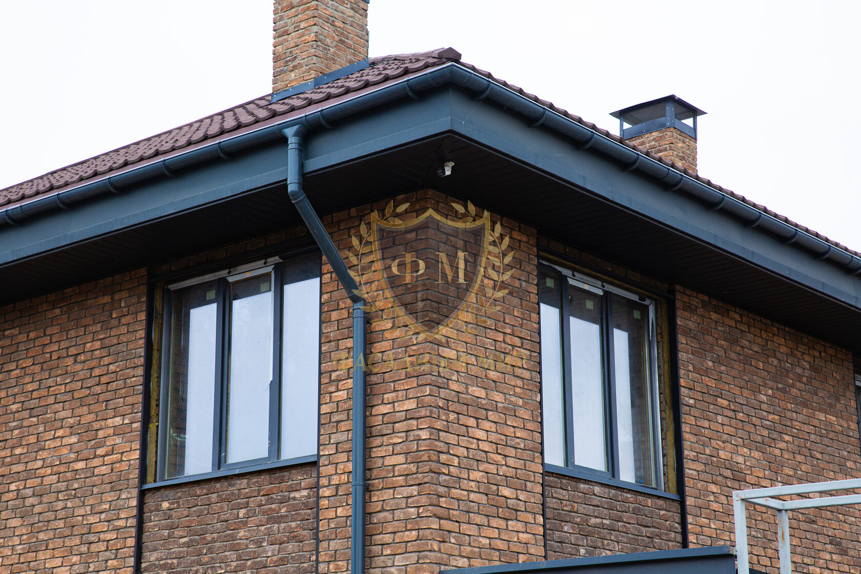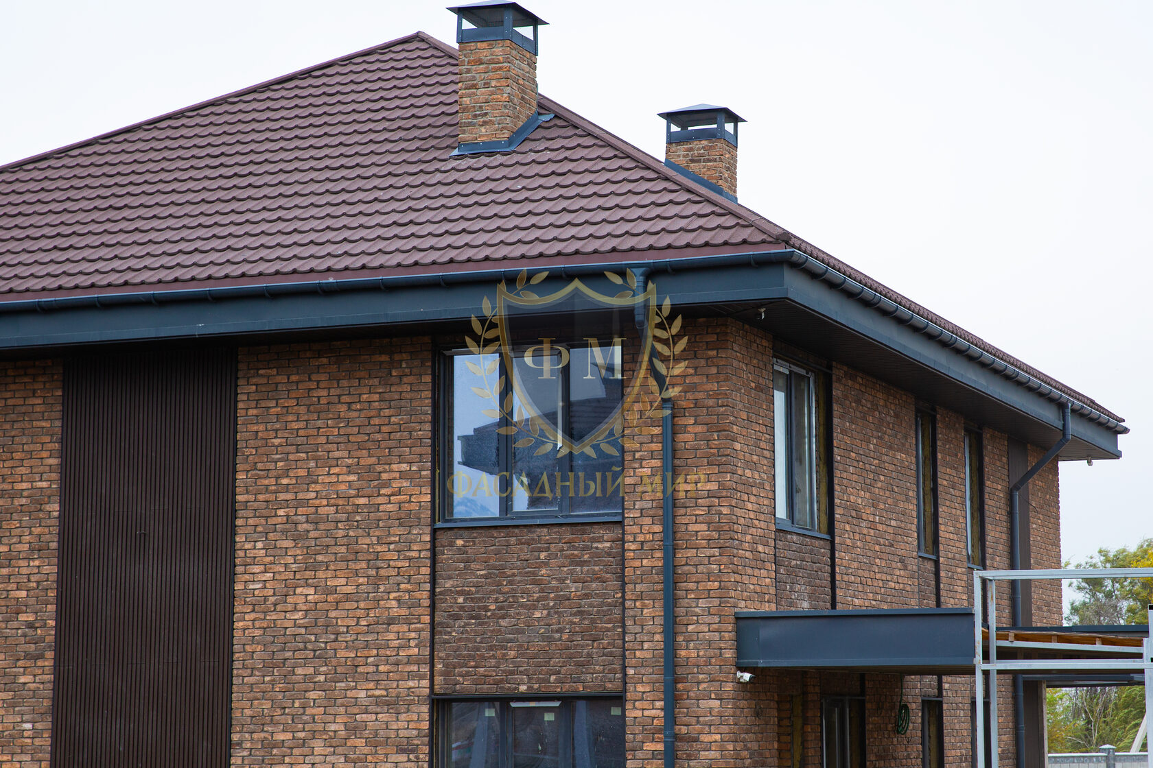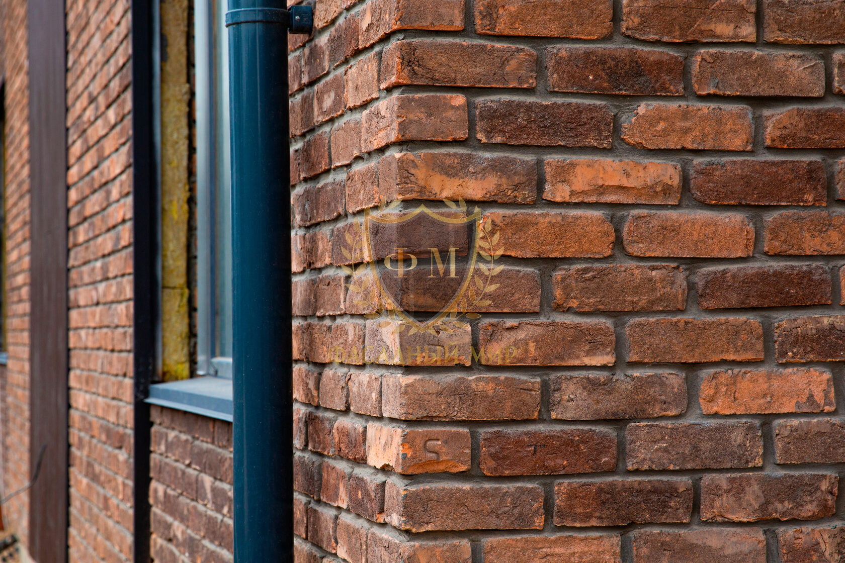 При облицовке фасада на углах дома использовался формат цельного кирпича (210*100*65 мм.), а на основной стене формат кирпича «Половинка» (210*50*65 мм.).